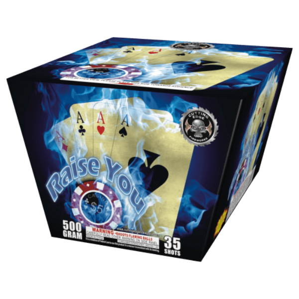 27 Shot 500 gram cake, Gold and silver Spiraling wolf whistles, mesmerizing UFO effect, and brocade finale.